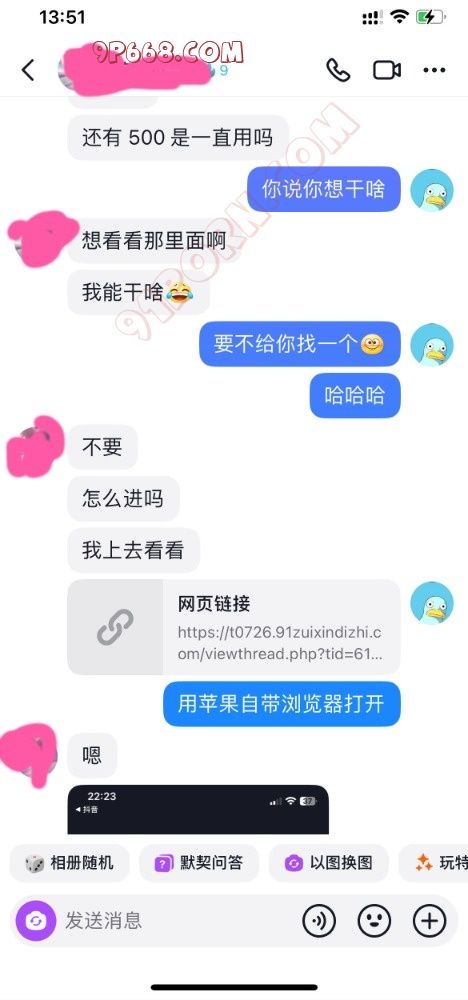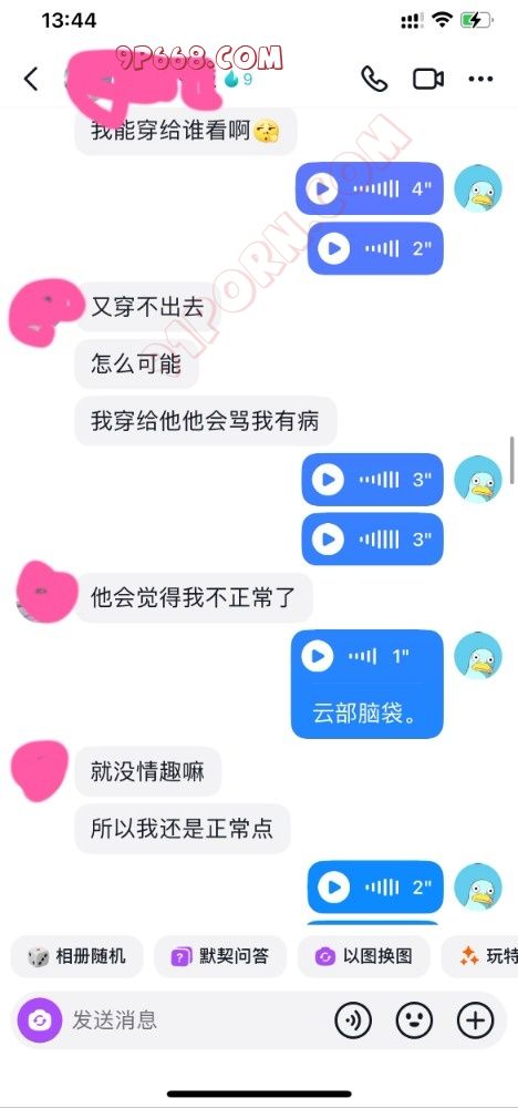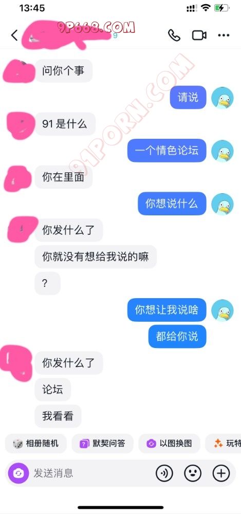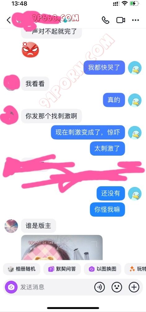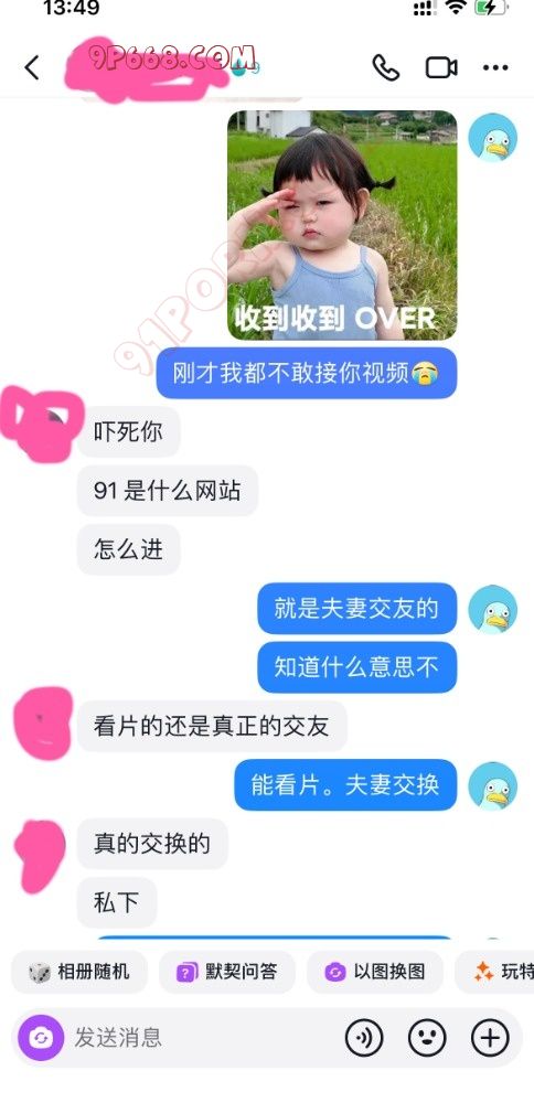 前天买的情趣内衣到了,长达两个小时的视频聊天,释放了两次,聊的人妻湿漉漉的。但是等到第二天突然收到此人妻的质问,问我91是什么,有没有发什么东西(当时心里好慌)立即请教大神看该如何回复,经过大神的耐心的指导,终于平息人妻的怒火,同时还有意外的收获,人妻非但没有太过于责怪我,而且还对91这个大家庭很有大的兴趣。看图吧,懂得都懂,独乐乐不如众乐乐,